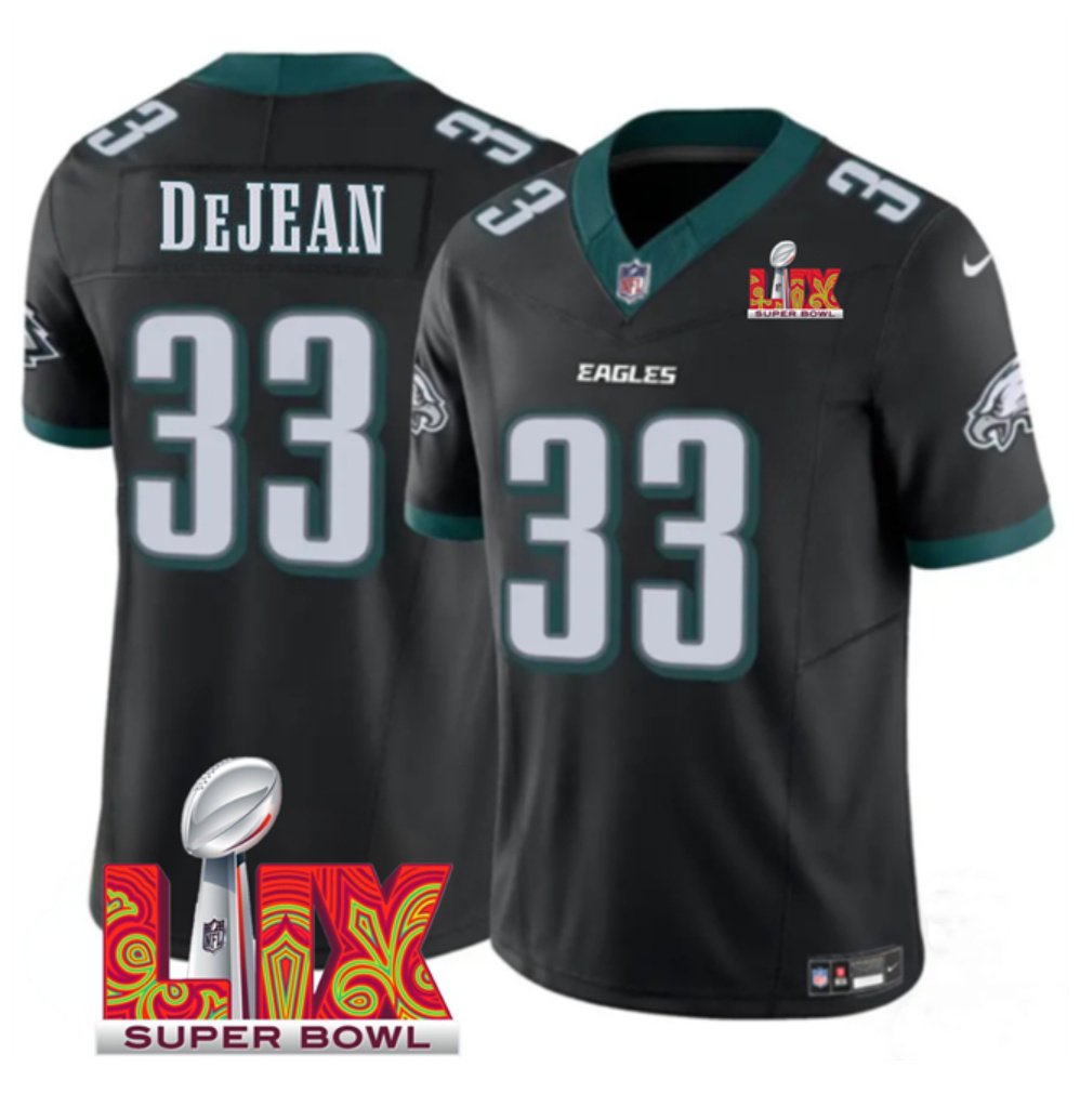 Black Philadelphia Eagles #33 Cooper DeJean 2025 Super Bowl LIX Patch F.U.S.E. Vapor Limited Stitched Football Jersey – PEL138